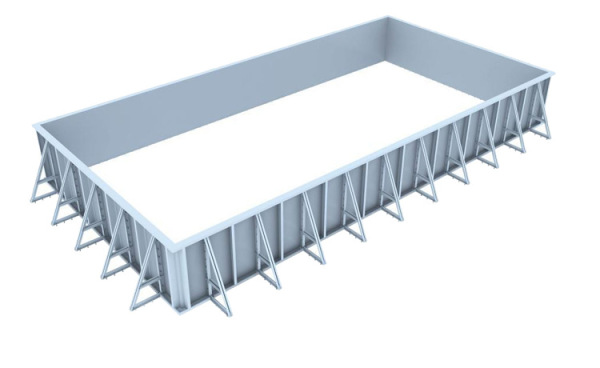 傳統(tǒng)的鋼結(jié)構(gòu)泳池做法是以鋼板圍成池體,在四周以鍍鋅方管和角鐵作為支撐,這樣的泳池有非常明顯的缺陷。一是使用壽命非常短。這種泳池池體依賴平臺(tái),平臺(tái)的壽命決定整個(gè)泳池的壽命,而鍍鋅方管和角鐵的耐腐蝕性本就不強(qiáng),在加上泳池的潮濕、有腐蝕性的環(huán)境,壽命僅在5~10年左右,因此整個(gè)泳池非常短壽。