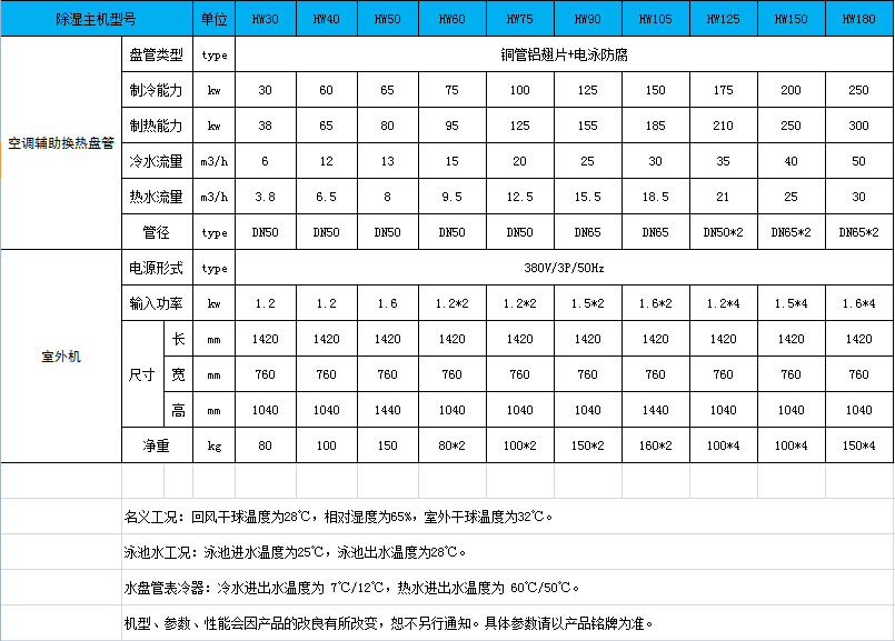 由于熱能會(huì)經(jīng)墻壁窗戶等傳導(dǎo)及換新風(fēng)流失,當(dāng)熱泵所產(chǎn)生的熱能不足以滿足要求時(shí),由輔助空氣加熱器補(bǔ)充提供室內(nèi)暖氣所需的熱能即可。只需提供其本身的運(yùn)行電能,熱泵即能按上述工作程序不斷循環(huán)運(yùn)行,以較低的能耗,實(shí)現(xiàn)“池水加熱、空調(diào)、除濕”三大功能的和諧平衡。