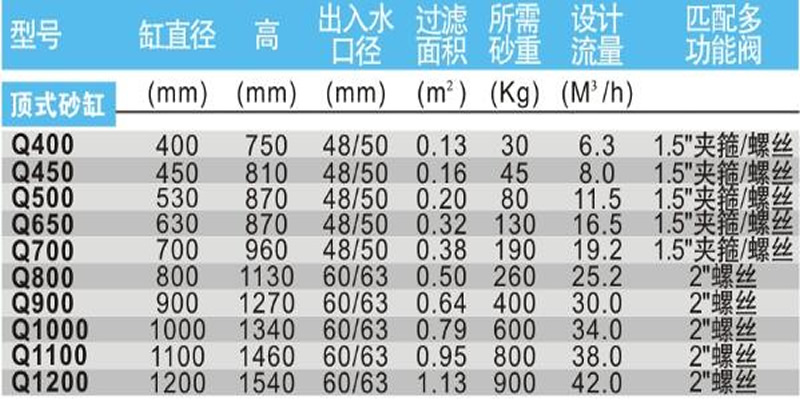 泳池過濾設(shè)備過濾砂缸被廣泛應用各種環(huán)保水處理、污水處理、泳池桑拿水處理上。用石英砂作濾料,所以又稱過濾砂缸 過濾砂缸是一種常規(guī)的水處理過濾設(shè)備。又被稱作過濾砂缸、沙濾罐、壓力過濾器、快速過濾器等。過濾砂缸原理簡單,操作方便,過濾效果顯著。它一般需要進水有一定的壓力,當水流經(jīng)過過濾砂缸時,厚厚的沙層會將水中的固體懸浮物進行隔離分離,在懸浮物積累到一定的程度時,可對砂缸進行反沖洗。如此反復,即可達到清澈水質(zhì)的目的。過濾砂缸一般采用玻璃纖維樹脂材料制成,強度高,重量輕。高耐壓可達到0.4MPa。(正常工作壓力2.5-4kg/cm2,也可提供特殊要求工作壓力的砂缸)。同時玻璃纖維樹脂材料具有相當?shù)目棺贤饩€抗老化的特性。使過濾砂缸可以適用于各種露天工程。過濾砂缸的結(jié)構(gòu)相對簡單,內(nèi)部有制作精細的布水器,可以防止沙子從回水中流失,外部的砂缸頭可以十分方便地進行過濾及反沖洗等功能的轉(zhuǎn)換。砂缸頭上有三個接口,分別是進水,出水,排污。三個接口均有活接相連,可以快速的安裝和拆卸管道。砂缸頭活接均有公制及英制兩種制式,可以與不同地區(qū)的管道相匹配。
